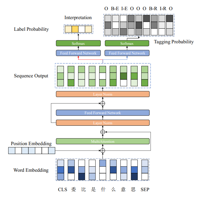问答系统中的首要任务即为对用户查询的意图解析。意图解析可分为查询中的实体抽取与查询的类别判断两个信息抽取任务,也可以看作是序列标注和文本分类问题,这两个任务之间具有较高的关联性,因此通过构建双向 Transformer 的多任务联合模型同时进行实体抽取与问题分类,从而完成对查询的意图解析工作,该模型的输入为用户查询,输出为查询中的实体或关系词以及查询所属的预设类别。通过该方法,可以从用户输入的文本解析用户意图,获取问句中的关键信息,根据获取的意图和槽位信息,可以通过适当的匹配方式从数据库或语料中获取相应的反馈结果。